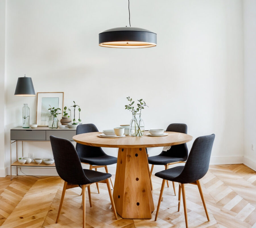Home Comedor Contemporáneo con acentos negros Crear un proyecto 3D de un comedor con madera…