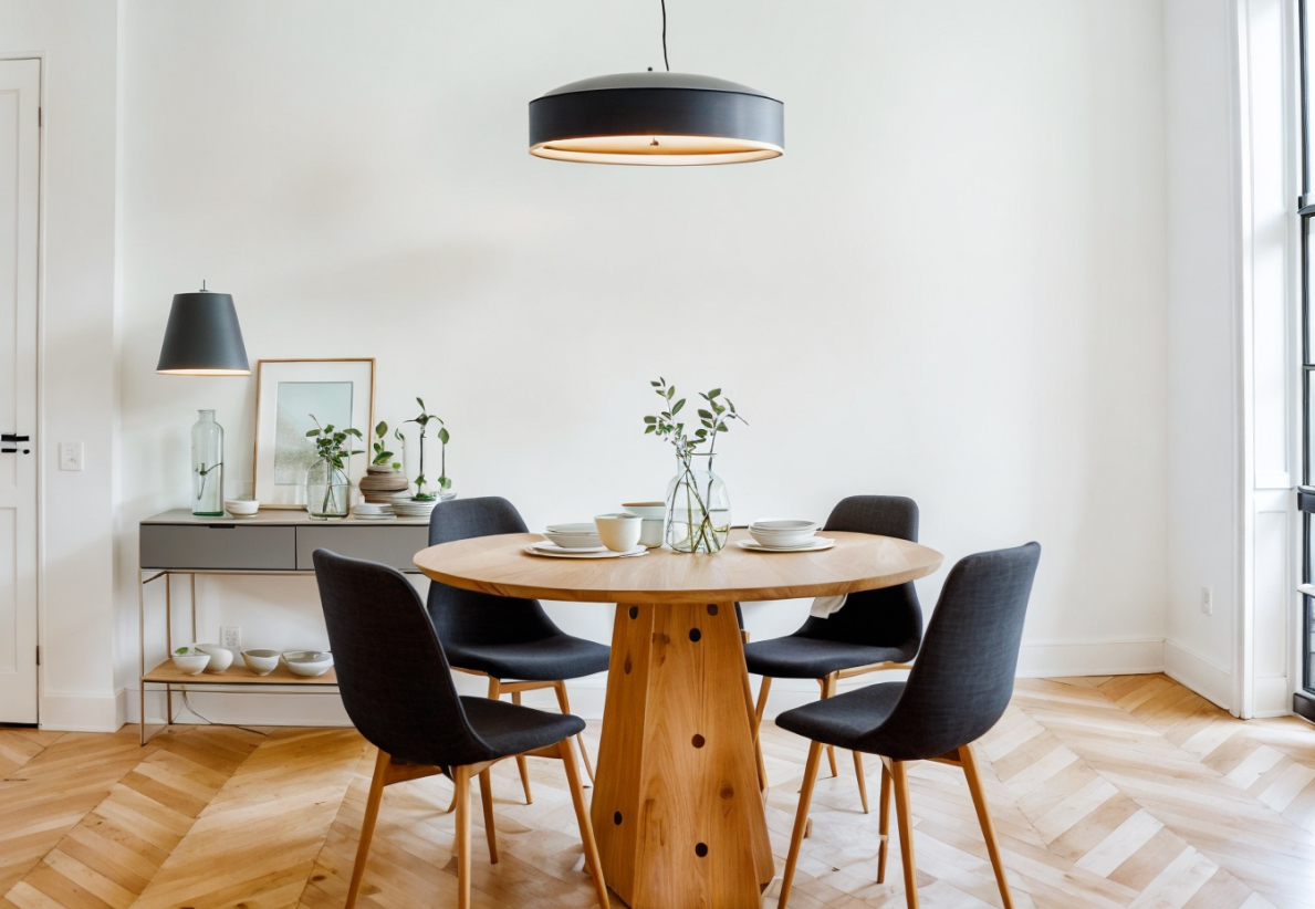 Home Comedor Contemporáneo con acentos negros Crear un proyecto 3D de un comedor con madera…